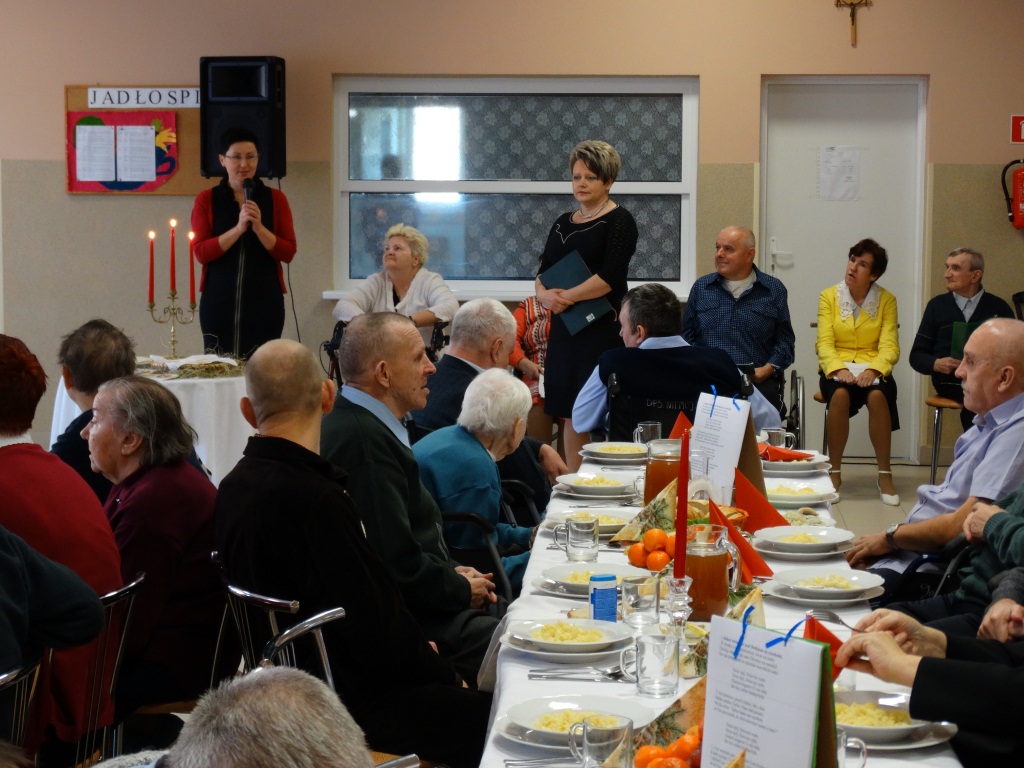 Tradycyjnie uroczystość rozpoczęła Dyrektor Domu Pani Renata Konecka, po której głos zabrali zaproszeni goście. Następnie grupa teatralno–muzyczna „Czarno to widzę”, działająca na terenie Domu, zaprezentowała część artystyczną przybliżającą tradycje świąt Bożego Narodzenia. Po wspólnej modlitwie i przełamaniu się opłatkiem, wśród dźwięku kolęd wszyscy zasiedli do uroczystej Wigilii. Spotkaniu towarzyszyła rodzinna atmosfera, która dostarczyła wielu wzruszeń i radości.