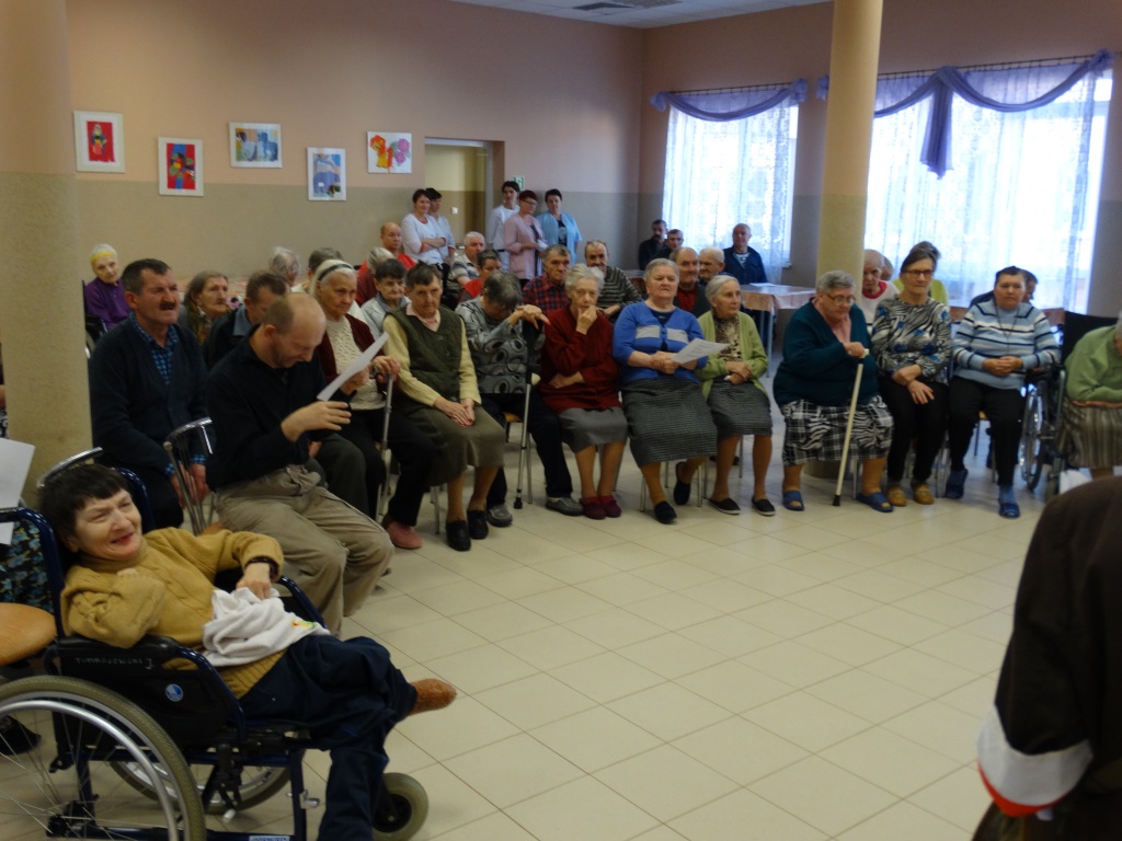 Pod takim tytułem w dniu 07.11.2018r. odbył się w naszym Domu występ chóru młodzieży „Jak orlęta” ze Szkoły Podstawowej i Gimnazjum w Białaczowie. Młodzież już kilkakrotnie gościła u nas, dając zawsze piękny występ i umilając czas Mieszkańcom. Tym razem było podobnie. W związku z setną rocznicą odzyskania przez Polskę niepodległości chór zaśpiewał wiele patriotycznych pieśni m.in. „Marsz Polonia”, „Piechota”, „Ułani”, „Legiony”, „Hymn Sybiraków” oraz utwór pt. ”Orlęta” z autorską interpretacją. Każdy, kto mógł włączał się do wspólnego śpiewu, a brawa na zakończenie występu pokazały, że program bardzo podobał się wszystkim. Tradycyjnie zostało zrobione wspólne pamiątkowe zdjęcie. Po występie młodzież odwiedziła w pokojach te osoby, które ze względu na stan zdrowia nie mogły uczestniczyć w występie.