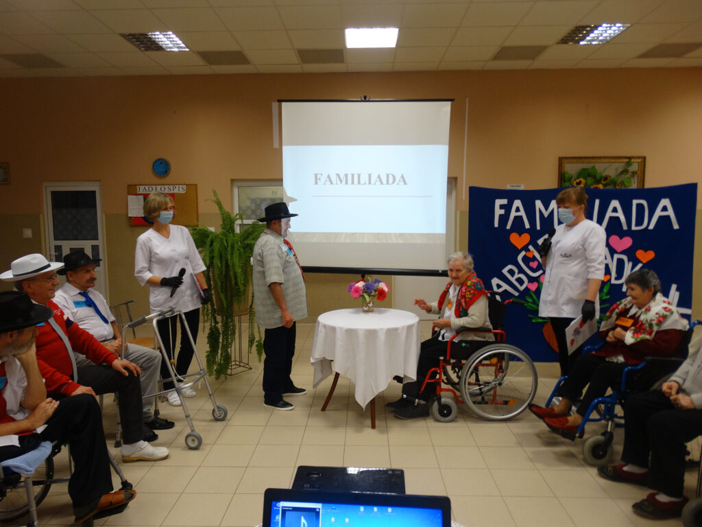 W dniu 25.01.2021r. z okazji dnia Babci i Dziadka w naszym Domu odbyło się spotkanie integracyjne, którego główną atrakcją był teleturniej „Familiada” składający się z drużyny kobiet i mężczyzn. Seniorzy rywalizowali o tytuł zwycięskiej drużyny i główną nagrodę – niespodziankę. Walka była bardzo wyrównana, ostatecznie przewagą jednego punku wygrały kobiety. Po teleturnieju dla seniorów przygotowany został słodki poczęstunek i karty okolicznościowe.