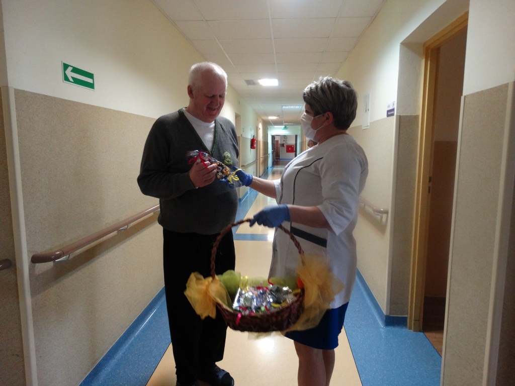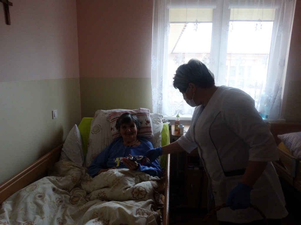 Z tej okazji przygotowane zostały słodkie upominki. Ze względu na sytuację epidemiologiczną dzisiejsze święto miało wymiar symboliczny, jedynie poprzez wręczenie w pokojach mieszkalnych słodkich prezentów. Mieszkańcy Domu byli bardzo wzruszeni ze względu na charakter święta i wiążące się z nim wspomnienia.