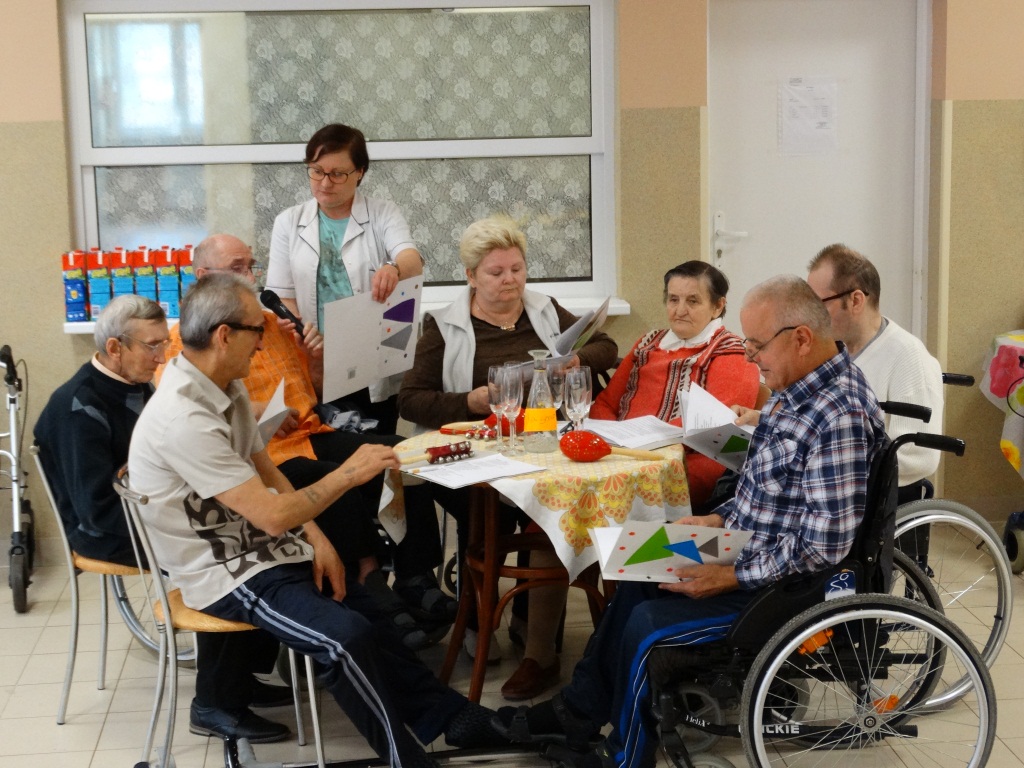 20 październik to Europejski Dzień Seniora. To wyjątkowe święto ludzi starszych, którym należy się szacunek i wdzięczność za bezinteresowną miłość i mądrość, jakimi obdarowują młodsze pokolenia. W naszym Domu, aby uczcić ten dzień, zostało zorganizowane spotkanie przy słodkim poczęstunku i muzyce. Po krótkim występie przygotowanym przez grupę teatralną „Czarno to widzę” działającą na terenie Domu i życzeniach złożonych wszystkim obecnym seniorom przez Dyrektor Domu, rozpoczęła się zabawa przy ulubionych utworach. Tańce przeplatane wesołymi integracyjnymi konkursami wprowadziły wszystkich w pogodny i zabawowy nastrój.