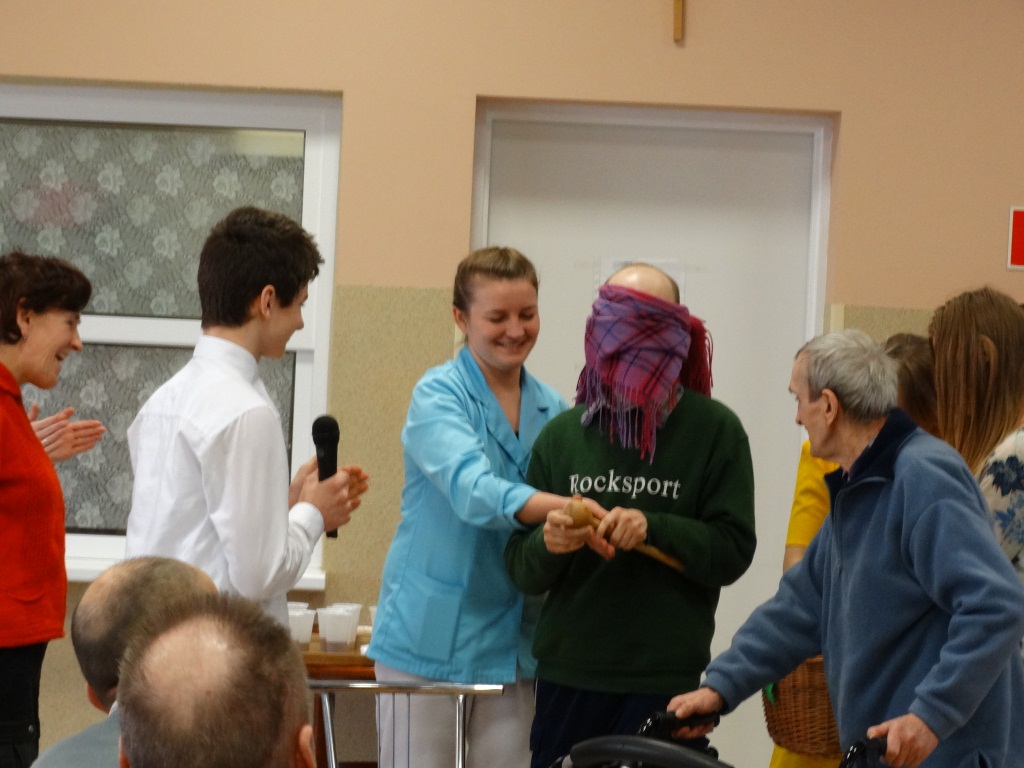 Na początku występujący artyści złożyli mieszkańcom najserdeczniejsze życzenia z okazji święta Babć i Dziadków, a także zaproponowali, że przy tej okazji będą „ważyć eliksir młodości”. W zabawny i śmieszny sposób przedstawili oglądającym kilka propozycji z twórczości Jana Brzechwy tj. „Rozmowa warzyw na straganie”, „Kłamczucha”, oraz „Kaczka dziwaczka”, chcąc pokazać jak najdłużej utrzymać młodość, jędrne ciało i cieszyć się życiem. By udowodnić, że sporządzony i wypity eliksir przez uczestników był magiczny i dodał wigoru, zaproponowali liczne konkursy z ćwiczeniami dla podopiecznych, gdzie nagrodzili medalami za aktywny udział w zabawach z nadaniem określonych tytułów np. „mistrz kuchni”, „medal za odwagę” itp.