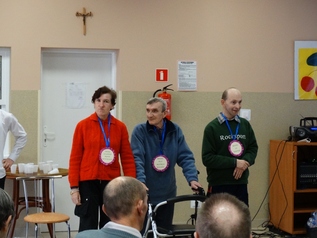 Na zakończenie młodzież zrobiła przemiłą niespodziewaną opiekunce wręczając jej medal za trud i czas włożony w przygowanie do występów. A także wszyscy mieszkańcy obdarowani zostali własnoręcznie wykonanym słodkim upominkiem w postaci ciasteczek. Podopieczni dziękując za występ podarowali na ręce wychowawczyni prace wykonane na terapii zajęciowej.