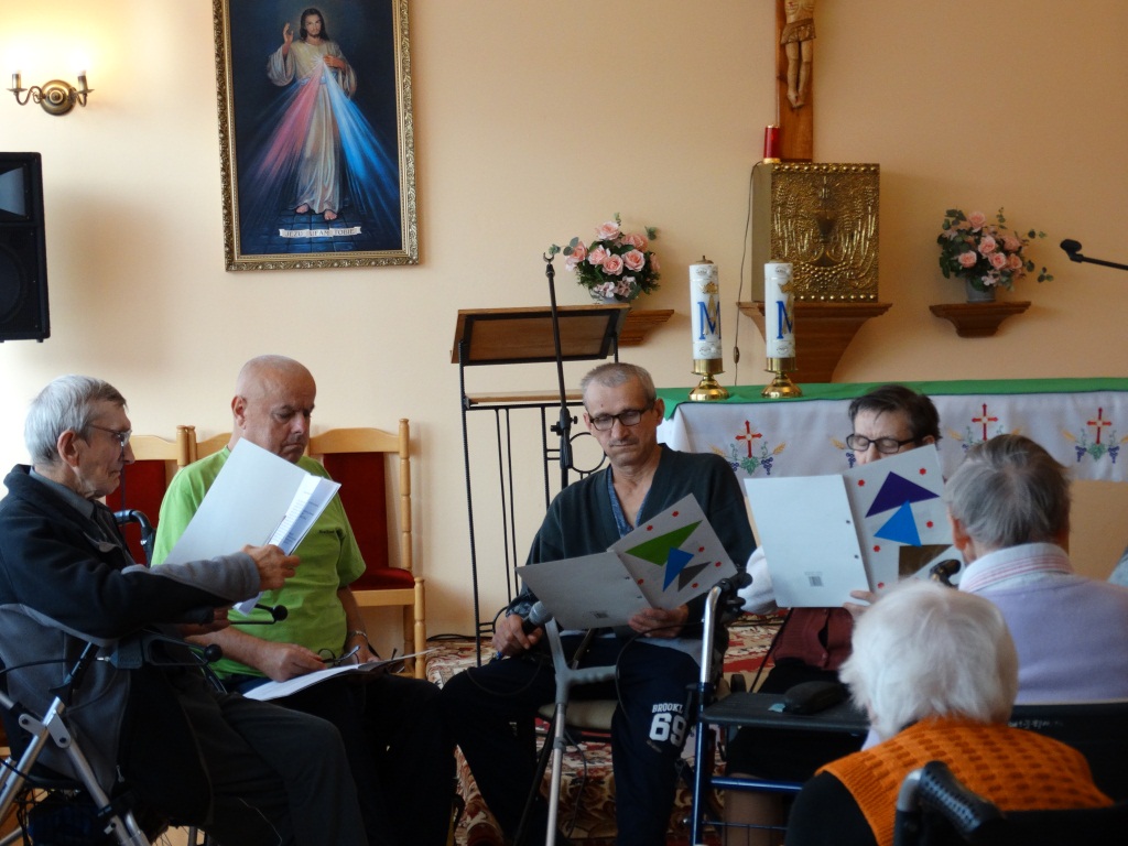 9 października już po raz 16. w całej Polsce organizowany będzie Dzień Papieski. Tegoroczne hasło tego dnia to „Jan Paweł II – Bądźcie świadkami miłosierdzia”. W naszym Domu w dniu 07.10. grupa teatralna dla uczczenia tegoż wydarzenia przedstawiła krótki program artystyczny poświęcony Błogosławionemu Janowi Pawłowi II. Inscenizacja odbyła się w kaplicy Domu. Zawierała wiadomości na temat życia naszego ukochanego papieża oraz wiersze o nim. Przywołała bliskie sercu wspomnienia. Na zakończenie wszyscy obecni zaśpiewali ukochaną pieśń papieża pt. „Barka”.