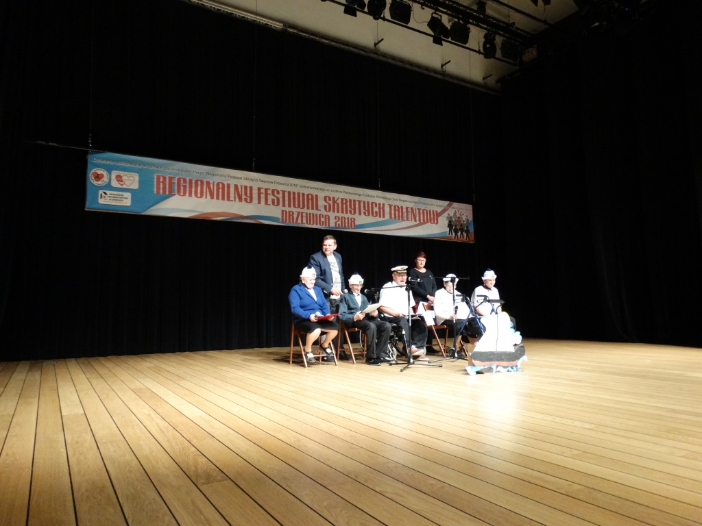 W dniu 03.10.2018r. nasi Mieszkańcy wzięli udział w Regionalnym Festiwalu Skrytych Talentów w Drzewicy, gdzie mogli przed szerszą publicznością pokazać jeden z wielu wyćwiczonych, podczas spotkań grupy teatralnej skecz pt. „Stara łajba”. Organizatorem Regionalnego Festiwalu Skrytych Talentów było Drzewickie Centrum Wolontariatu „Ofiarna dłoń” przy współpracy Warsztatu Terapii Zajęciowej w Drzewicy oraz Regionalnego Centrum Kultury w Drzewicy. W spotkaniu wzięli udział przedstawiciele z Domu Pomocy Społecznej ze Skrzynna, Warsztatów Terapii Zajęciowej z Drzewicy, Żarnowa, Tomaszowa Mazowieckiego, Lipin, Wolborza, Opoczna, Bełchatowa a także Środowiskowych Domów Samopomocy z Opoczna, Olszowca, Zduńskiej Woli, Myślakowic i Radomia. Występy były bardzo zróżnicowane i przygotowane w różnych formach. Każda z jednostek biorących udział w spotkaniu dostała nagrodę rzeczową i podziękowania. Po festiwalu i wspólnych rozmowach przy ciepłym posiłku, zadowoleni z udanego wyjazdu wróciliśmy do Domu.
