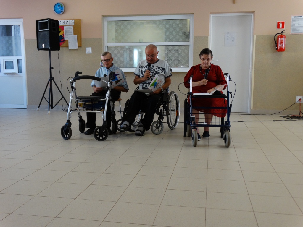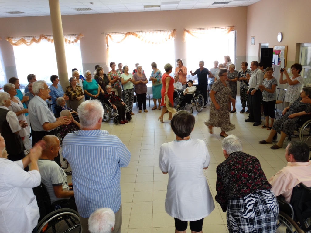 W dniu 13.09.2016r. po raz pierwszy odwiedzili nas uczestnicy Domu Dziennego Pobytu „Senior – Wigor” z Miedznej Drewnianej wraz z Panią Kierownik Marzeną Grzesińską i pracownikami. Spotkanie rozpoczęło się zaprezentowaniem krótkiego programu artystycznego przez grupę teatralną naszego Domu „Czarno to widzę”. Również zaproszeni goście przedstawili zabawny występ słowno-muzyczny, gdzie zostali nagrodzeni gromkimi brawami. Po słodkim akcencie ruszyliśmy do wspólnej zabawy przeplatanej licznymi konkursami, w której wszyscy chętnie brali udział. Następnym punktem było wspólne śpiewanie przy stołach piosenek biesiadnych i ludowych, gdzie każdy indywidualnie mógł zaprezentować swoje umiejętności śpiewając znane piosenki. Po smacznym obiedzie chętni skocznie udali się do zabawy przy muzyce, nie zabrakło również zabawy „Mam chusteczkę haftowaną”.