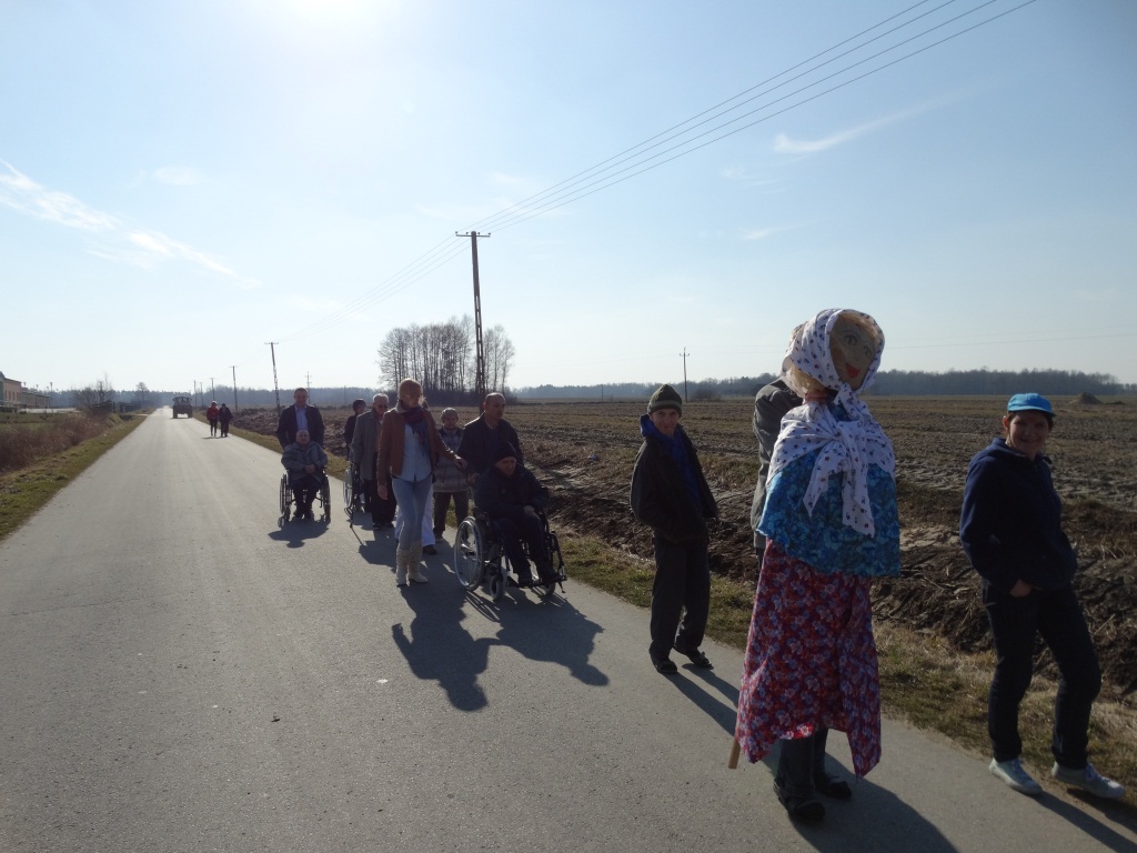 Topienie Marzanny, to zwyczaj przepędzania zimy. Obrządek związany jest z nadejściem pierwszego dnia wiosny. Jak co roku, mieszkańcy z pomocą instruktorów terapii zajęciowej przygotowali piękną kolorową kukłę, aby w zabawny sposób, pożegnać się z zimową porą. Korzystając ze słonecznej aury grupa mieszkańców wraz z Panią Dyrektor Renatą Konecką oraz opiekunami udała się w korowodzie nad pobliską rzeczkę, aby symbolicznie powitać wiosnę, paląc kukłę „Marzanny”. W dobrym nastroju i z uśmiechem na twarzach mieszkańcy wrócili do domu.