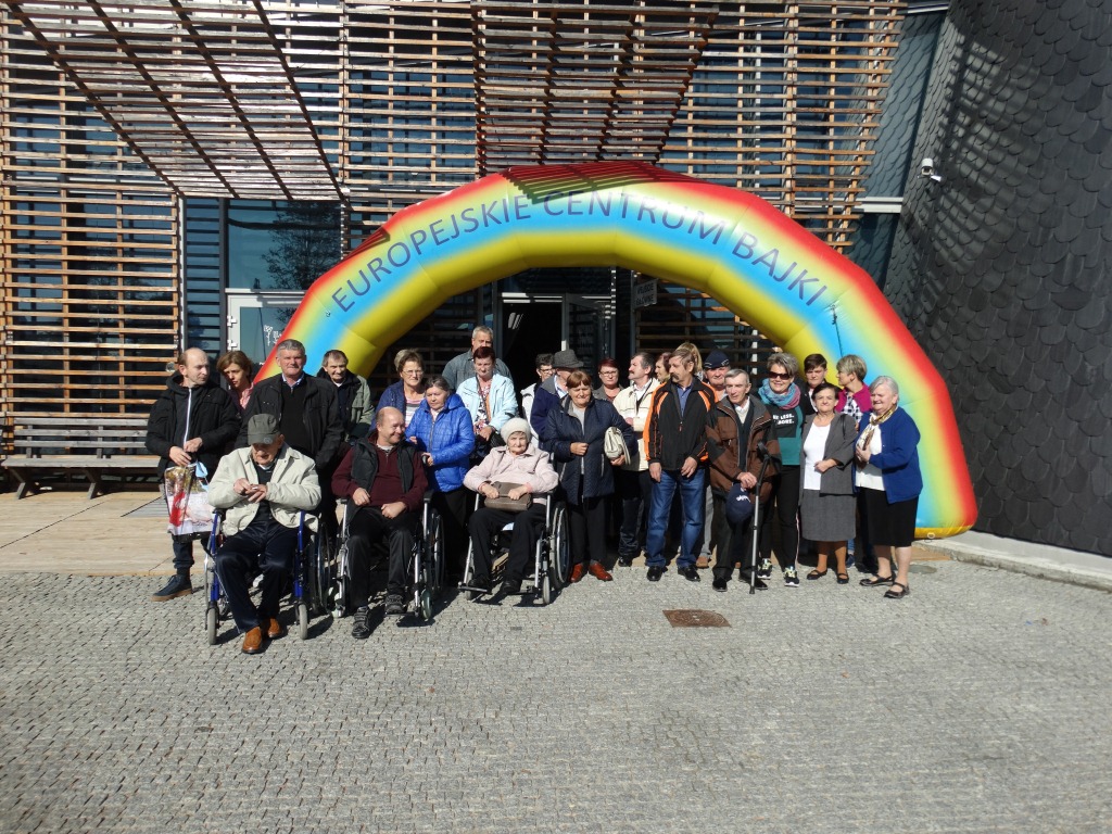 Piękny i słoneczny październik pozwolił na zorganizowanie dla Mieszkańców jednodniowej wycieczki krajoznawczej. Tym razem w dniu 10.10.2018r. udali się w kierunku Pacanowa, gdzie w Europejskim Centrum Bajki brali udział w interesujących i pouczających warsztatach „Jak to działa” i „Wybuchowa nauka”. Dzięki pierwszym, mogli rozwinąć wiedzę techniczną, kreatywność i wyobraźnię. Drugie warsztaty pokazały jak N2- ciekły azot jest wykorzystywany zarówno w medycynie jak i w kuchni molekularnej. Mieszkańcy spróbowali nitro lodów, byli świadkami „znikającego” prowadzącego warsztaty oraz zobaczyli inne fascynujące doświadczenia z wykorzystaniem ciekłego azotu. W przerwie między warsztatami wszyscy mogli zrelaksować się w kinie podczas wzruszającego filmu, który wycisnął niektórym łezkę z oka. Po zakończeniu wizyty w Europejskim Centrum Bajki, spacerkiem udaliśmy się do restauracji na pyszny obiad, zwiedzając przy okazji miasteczko słynnego Koziołka Matołka, w którym nie brakuje miejsc nazwanych jego imieniem. Na zakończenie zrobiliśmy sobie pamiątkowe zdjęcie w parku obok postaci Koziołka Matołka, po czym z zadowoleniem na twarzach udaliśmy się w drogę powrotną.