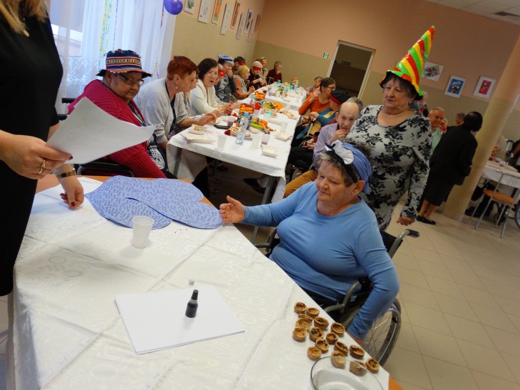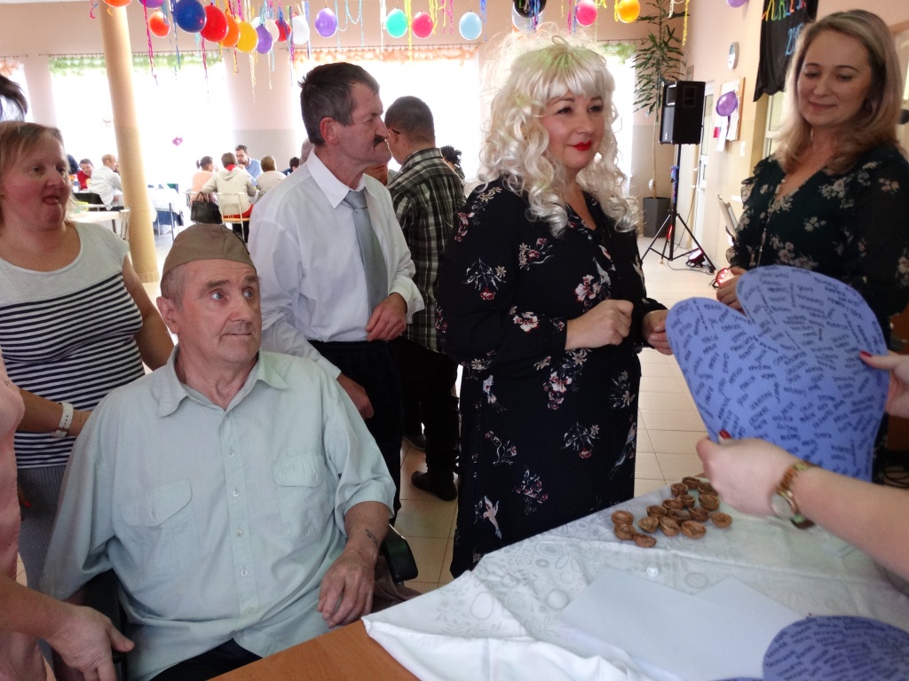 Zgodnie z tradycją, w dniu 29.11.2018r. w naszym Domu została zorganizowana zabawa andrzejkowa, w której wzięli udział mieszkańcy oraz zaproszeni goście – uczestnicy Warsztatów Terapii Zajęciowej z Żarnowa wraz z kierownikiem panem Michałem Cegiełłą i opiekunami. Po przywitaniu zebranych gości przez dyrektora Domu panią Renatę Konecką, instruktor ds. kulturalno- oświatowych wraz z mieszkańcem zaprezentowali przygotowane utwory muzyczne, po czym zabawa zaczęła się na całego. Głównym punktem spotkania były tańce integracyjne przy muzyce rozrywkowej. Nie zabrakło typowych dla andrzejek wróżb, dzięki którym można było poznać m.in. imię swojej sympatii czy też jej typ charakteru. Dopełnieniem udanego spotkania były pyszne wypieki oraz obiad, po którym pełni energii wszyscy wrócili na parkiet i tylko szkoda, że nie udało się zatrzymać biegnącego czasu i spotkanie niestety dobiegło końca. Mamy nadzieję, że Sylwester będzie równie huczny i udany!!!