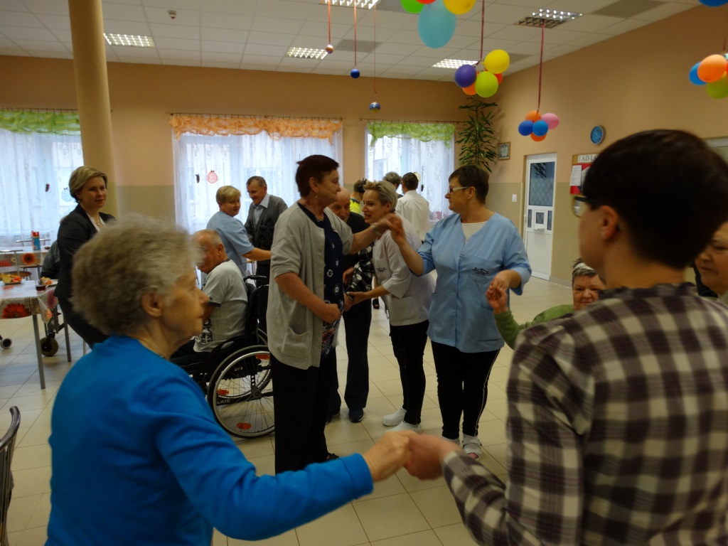 W dniu 31.12.2018r. , w godzinach dopołudniowych została zorganizowana dla Mieszkańców  zabawa sylwestrowa. Na początku spotkania pani Renata Konecka- Dyrektor Domu oraz pani Paulina Misztal- Kierownik Działu Terapeutyczno- Opiekuńczego złożyły zebranym najlepsze życzenia na nadchodzący Nowy 2019 Rok, życząc wiele zdrowia i samych dobrych dni. Przy słodkim poczęstunku i rytmach skocznej muzyki wszyscy wspólnie miło spędzili czas, szykując się na powitanie Nowego Roku. W przerwie pomiędzy tańcami mogliśmy posłuchać kilku utworów wykonanych przez pana Wiesława – Mieszkańca naszego Domu, który chętnie bierze udział we wszystkich spotkaniach.