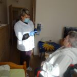 W dniu 22.10.2020r. Dyrektor wraz z kierownikiem działu terapeutyczno- opiekuńczego promowały higienę i dezynfekcję rąk jako działanie prewencyjne zapobiegawcze COVID-19.