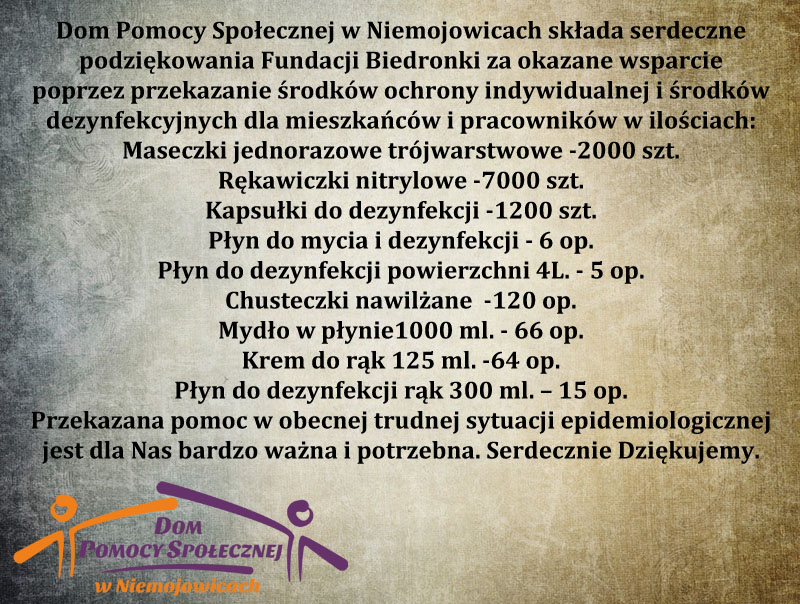 W dniu 09.07.2020 r. Wicewojewoda Łódzki Karol Młynarczyk wraz ze Starostą Powiatu Opoczyńskiego Marcinem Baranowskim oraz Wicestarostą Marią Barbarą Chomicz  zaskoczyli miłą i jakże potrzebną wizytą Dyrektora i Pracowników Domu Pomocy Społecznej w Niemojowicach.